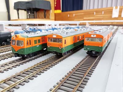 ED100の改造重連(カツミ製)+貨車編成(エンドウ、他各社製)、ED29(メーカー不明)、 EC72系(甲州モデルのペーパー製、カツミ製)、C56(メーカー不明)、 旧型客車編成(KATO、TOPMIXなど各社製、EF58(茶はKATO、青は天賞堂製) |